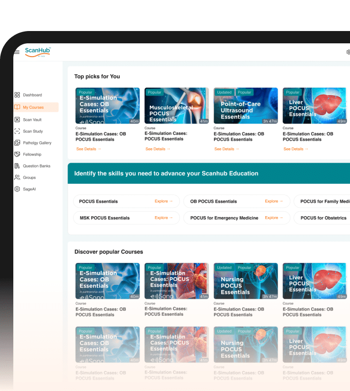 Join our acclaimed 1-2 day in-person courses featuring high-yield lectures and hands-on scanning sessions with expert instructors. These courses demonstrate our proven teaching approach and give you a preview of what we can customize for your institution.