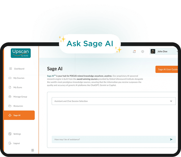 24/7 AI-powered clinical support trained on expert-verified POCUS content: