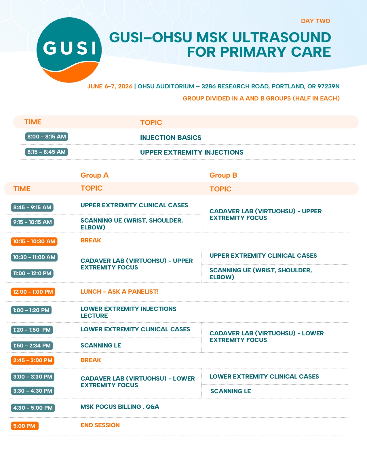 Day 1 focuses on practical scanning of core MSK examinations, with direct instruction and real-time feedback from expert faculty to help participants refine image acquisition and interpretation.