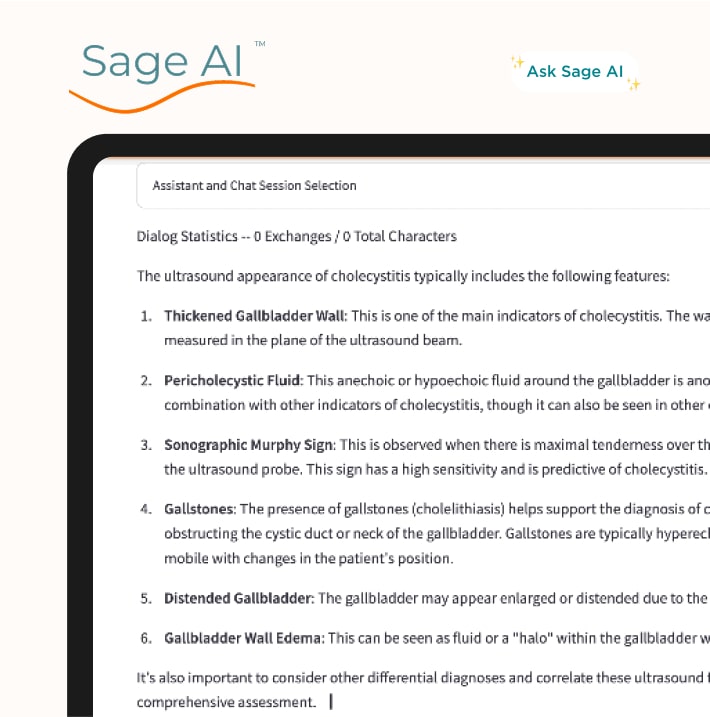 Sage AI automatically reviews your uploaded scans for image quality, proper anatomy labeling, and technical issues. You’ll receive instant feedback with suggestions for improvement, helping you learn proper technique with every scan.