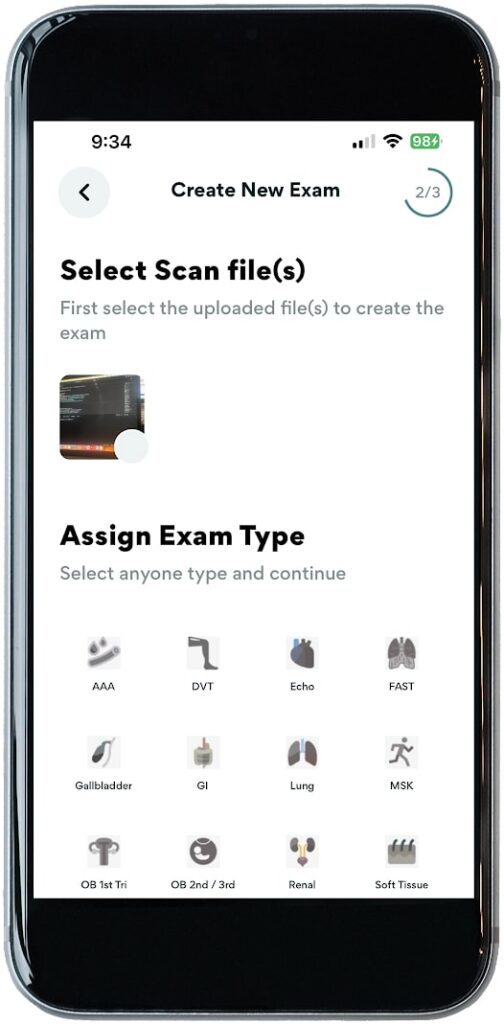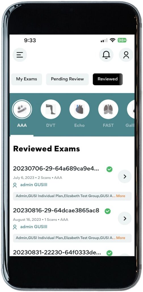 The scanOne™ app is a safe and secure way to upload and manage POCUS scans from any ultrasound device — enabling efficient training, QA, and feedback.